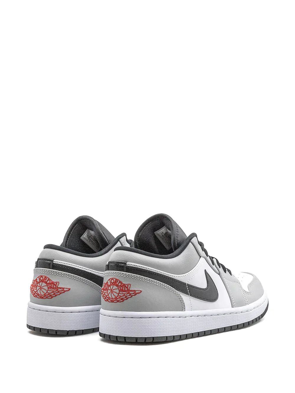Grey/white rubber/leather Air Jordan 1 Low sneakers from JORDAN featuring signature Swoosh logo detail, signature Jumpman motif, contrasting panel detail, round toe, front lace-up fastening and rubber sole.